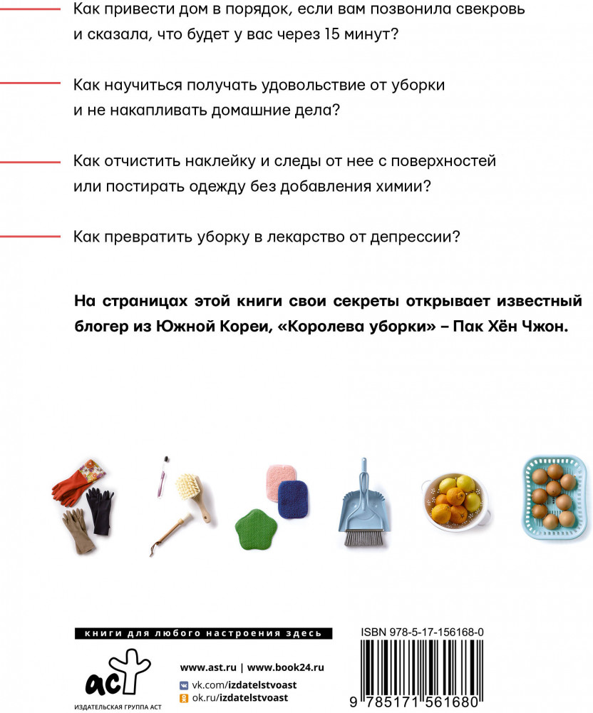 В данный момент этот товар отсутствует в продаже. Возможно, у нас найдется аналогичный или похожий товар здесь. Серия: Книга-тренд. Подарочное издание Пак Хён Чжон — «Королева уборки», известный блогер из Южной Кореи.