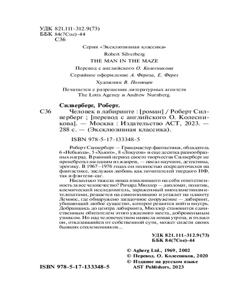 💳 Оплатить за товар можно при получении 🇰🇿 Есть бесплатная доставка по Казахстану от 1 дня 🎁 Копите бонусы с каждой покупки Серия: Эксклюзивная классика Роберт Силверберг — Грандмастер фантастики, обладатель 6 «Небьюл», 5 «Хьюго», 8 «Локусов» и еще десятка разнообразных наград. В ранний период своего творчества Силверберг не пренебрегал ни одним из жанров, — писал научпоп, детективы, эротику. В 1967–1976 годах он полностью сосредоточился на фантастике, заслужив любовь как почитателей твердого НФ, так и фэнтези-саг. |