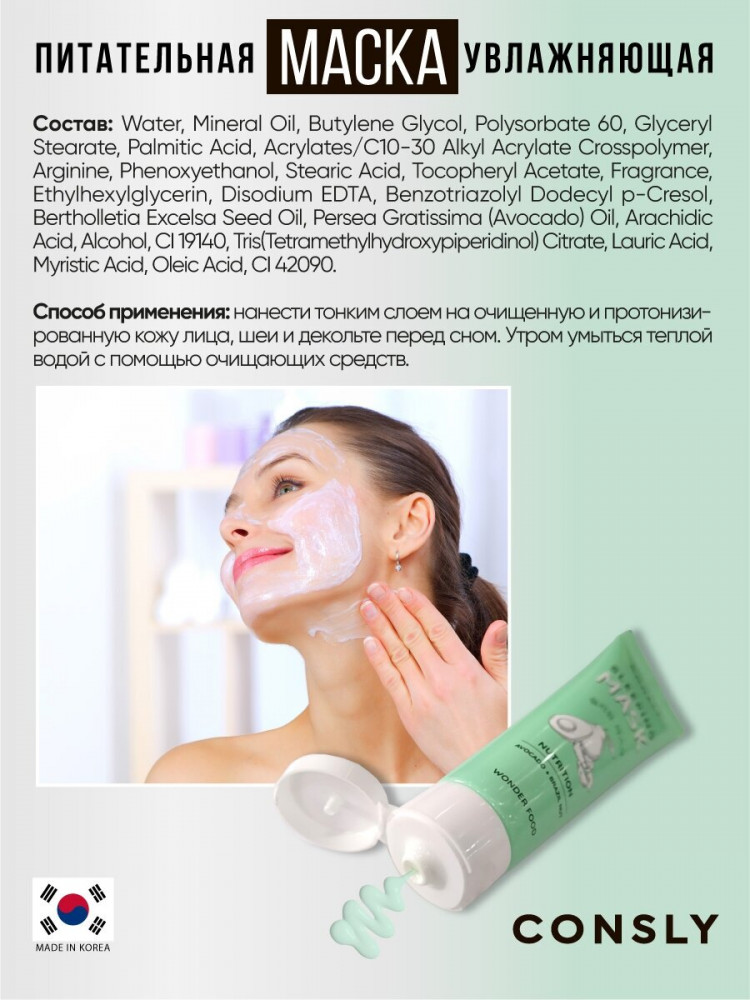 💳 Оплатить за товар можно при получении 🇰🇿 Есть бесплатная доставка по Казахстану от 1 дня 🎁 Копите бонусы с каждой покупки Ночная маска Wonder Food Nutrition Sleeping Mask с маслом бразильского ореха и авокадо создана экспертами Consly для комплексного восстанавливающего ухода за лицом, зоной декольте и шеей. Растительные масла восполняют потери питательных веществ и влаги, снабжают кожу микроэлементами, витаминами и антиоксидантами, обеспечивают защиту от влияния окружающей среды и продлевают молодость. После ночного ухода кожа разглаживается, избавляется от признаков обезвоживания, становится более плотной, упругой и эластичной. Благодаря маске активизируется выработка коллагена и эластина, ускоряется регенерация, снижается риск появления сухости в будущем. |
