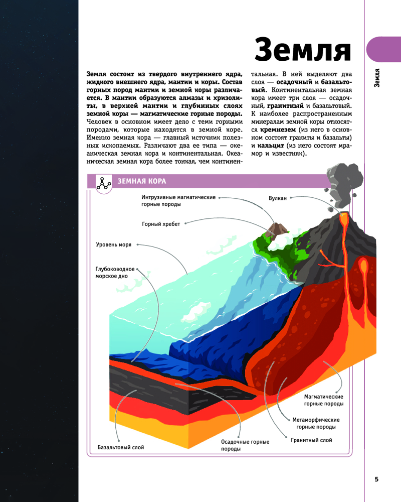 Эта увлекательная детская энциклопедия в картинках откроет для вас удивительный мир камней. В книге подробно описаны основные горные породы, которые включают в себя множество минералов. В коротких, но емких статьях представлены самые разные минералы, рассказано, как они используются в промышленности и технике, а также в ювелирном деле, когда искусные мастера превращают их в сверкающие драгоценности. В книге содержится информация не только о земных камнях, но и о небесных, прилетевших к нам из глубин космоса. Знакомит энциклопедия и с горными породами и минералами Марса — планеты, во многом похожей на Землю. Но главное — на страницах энциклопедии приведено множество ярких иллюстраций, которые дают читателю возможность в мельчайших подробностях рассмотреть минералы и драгоценные камни. Кроме того, книга содержит глоссарий и алфавитный указатель, которые помогут быстро найти сведения об интересующем минерале или объяснить незнакомое понятие.