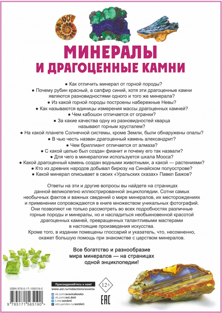 Познавать богатейший мир минералов вместе с этой энциклопедией интересно и радостно!
