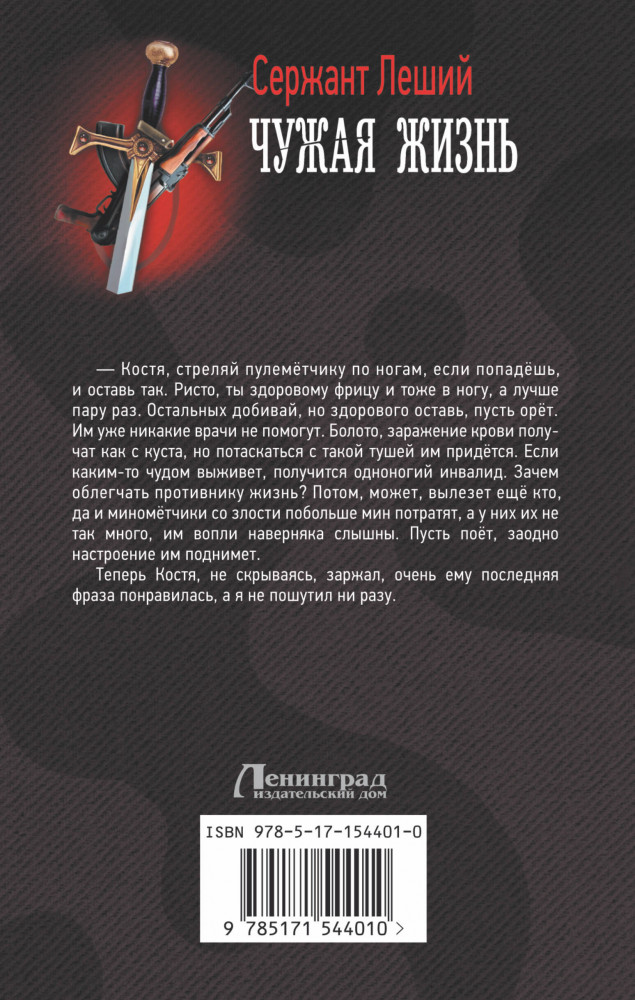 💳 Оплатить за товар можно при получении 🇰🇿 Есть бесплатная доставка по Казахстану от 1 дня 🎁 Копите бонусы с каждой покупки Серия: Военная фантастика Рыбалка в карельских лесах для новоиспечённого инвалида, которому совсем недавно ампутировали половину правой ступни, продолжается в июле сорок первого. Немцы, финны, местные полицаи, пленные красноармейцы, дети советского генерала и главный герой, судорожно мечущийся по вышеупомянутым лесам. И конца и края этому не видно. |