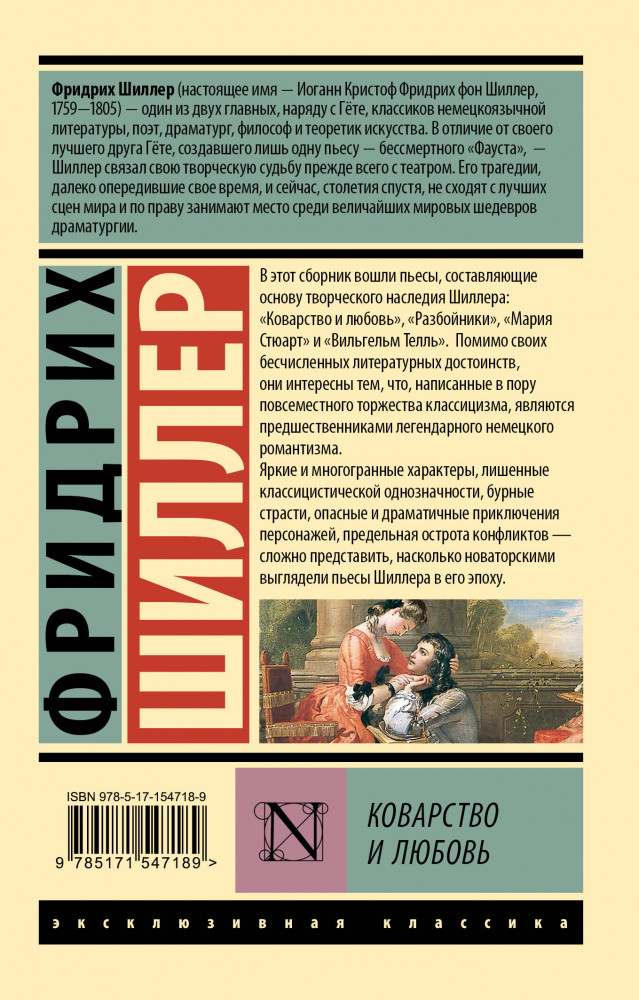 💳 Оплатить за товар можно при получении 🇰🇿 Есть бесплатная доставка по Казахстану от 1 дня 🎁 Копите бонусы с каждой покупки Серия: Эксклюзивная классика В этот сборник вошли пьесы, составляющие основу творческого наследия Шиллера: «Коварство и любовь», «Разбойники», «Мария Стюарт» и «Вильгельм Телль». Помимо своих бесчисленных литературных достоинств, они интересны тем, что, написанные в пору повсеместного торжества классицизма, являются предшественниками легендарного немецкого романтизма. |