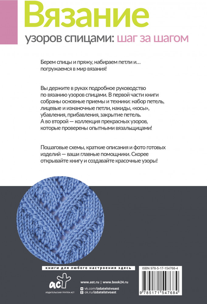 Вязание узоров спицами: шаг за шагом. Самый наглядный самоучитель+81 твердый переплет малый формат портативность для новичков
