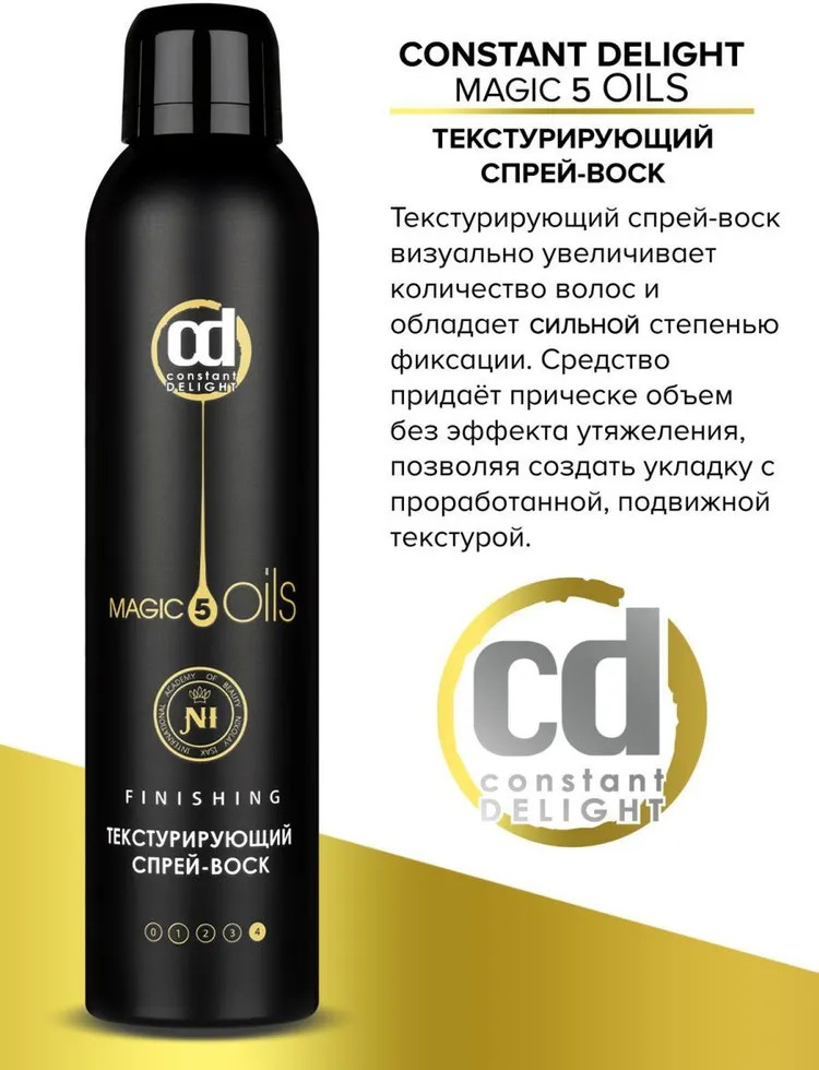 Constant Delight Cпрей-воск для волос текстурирующийВ данный момент этот товар отсутствует в продаже. Возможно, у нас найдется аналогичный или похожий товар здесь. Серия: Magic 5 oils Текстурирующий спрей-воск визуально увеличивает количество волос и обладает средней степенью фиксации. Средство придает прическе объем без эффекта утяжеления, позволяет создать укладку с проработанной, подвижной текстурой. |