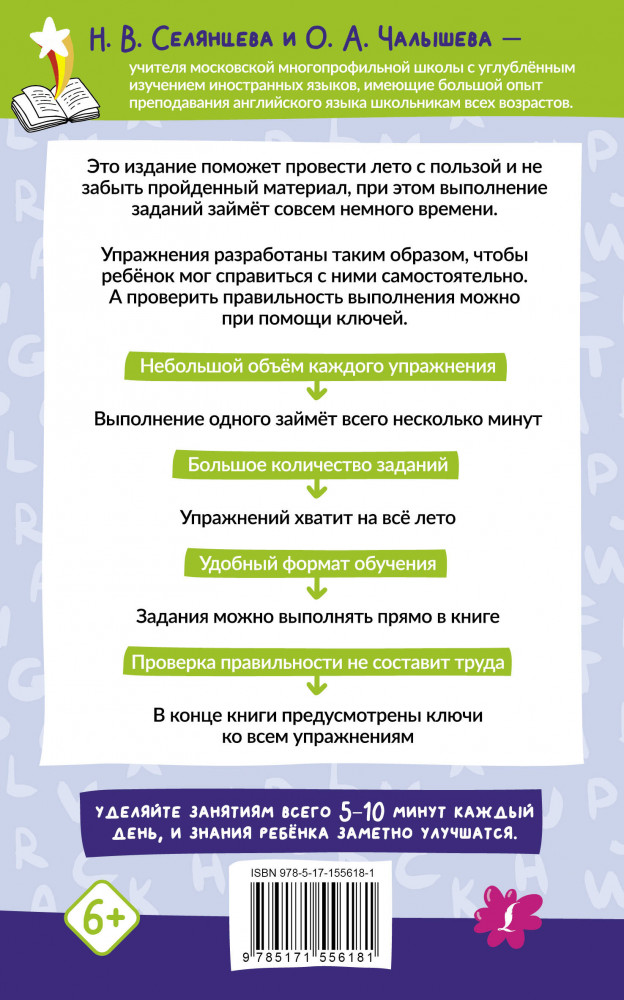 💳 Оплатить за товар можно при получении 🇰🇿 Есть бесплатная доставка по Казахстану от 1 дня 🎁 Копите бонусы с каждой покупки Серия: Лето с пользой Наталья Валерьевна Селянцева — учитель английского языка высшей аттестационной категории, аккредитованный эксперт ЕГЭ, автор пособий для школьников. |