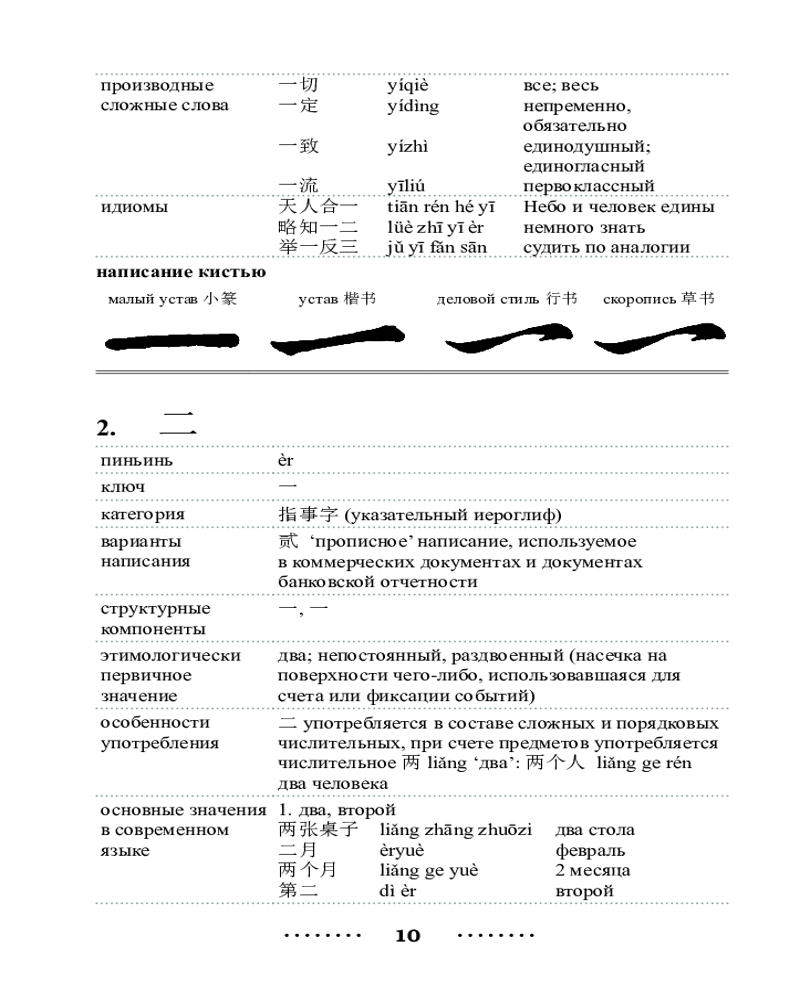Каждая статья содержит пиньинь, этимологию и примеры употребления, а также четыре вида написания иероглифа, начертанных кистью профессиональным каллиграфом. Иероглифы идут в порядке, удобном для овладения написанием кистью самостоятельно.