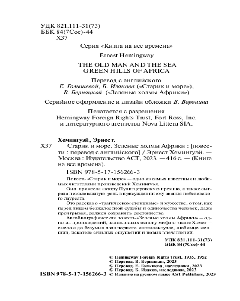 Старик и море. Зеленые холмы Африки-23% +13 шрифт формат цена читаемость издание