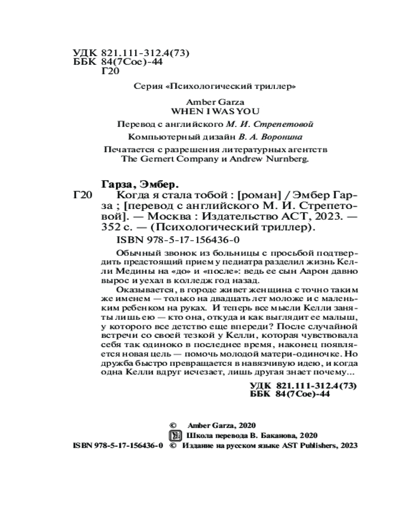 💳 Оплатить за товар можно при получении 🇰🇿 Есть бесплатная доставка по Казахстану от 1 дня 🎁 Копите бонусы с каждой покупки Серия: Психологический триллер (м) Обычный звонок из больницы с просьбой подтвердить предстоящий прием у педиатра разделил жизнь Келли Медины на «до» и «после»: ведь ее сын Аарон давно вырос и уехал в колледж год назад. |