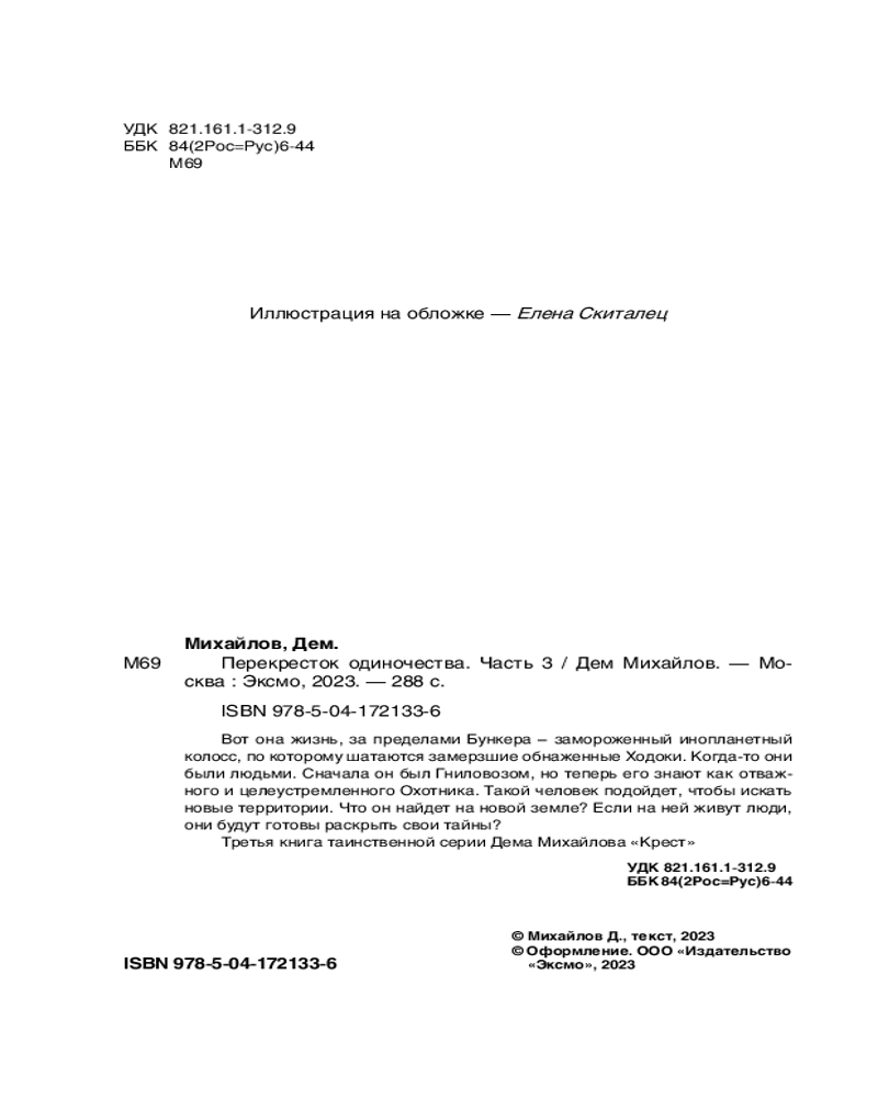 💳 Оплатить за товар можно при получении 🇰🇿 Есть бесплатная доставка по Казахстану от 1 дня 🎁 Копите бонусы с каждой покупки Серия: Мир Перекрёстка Пугающая история о людях, низведенных до бездушных механизмов. Они вынужденны существовать в промерзших коридорах и жестоко платить за ошибки. |