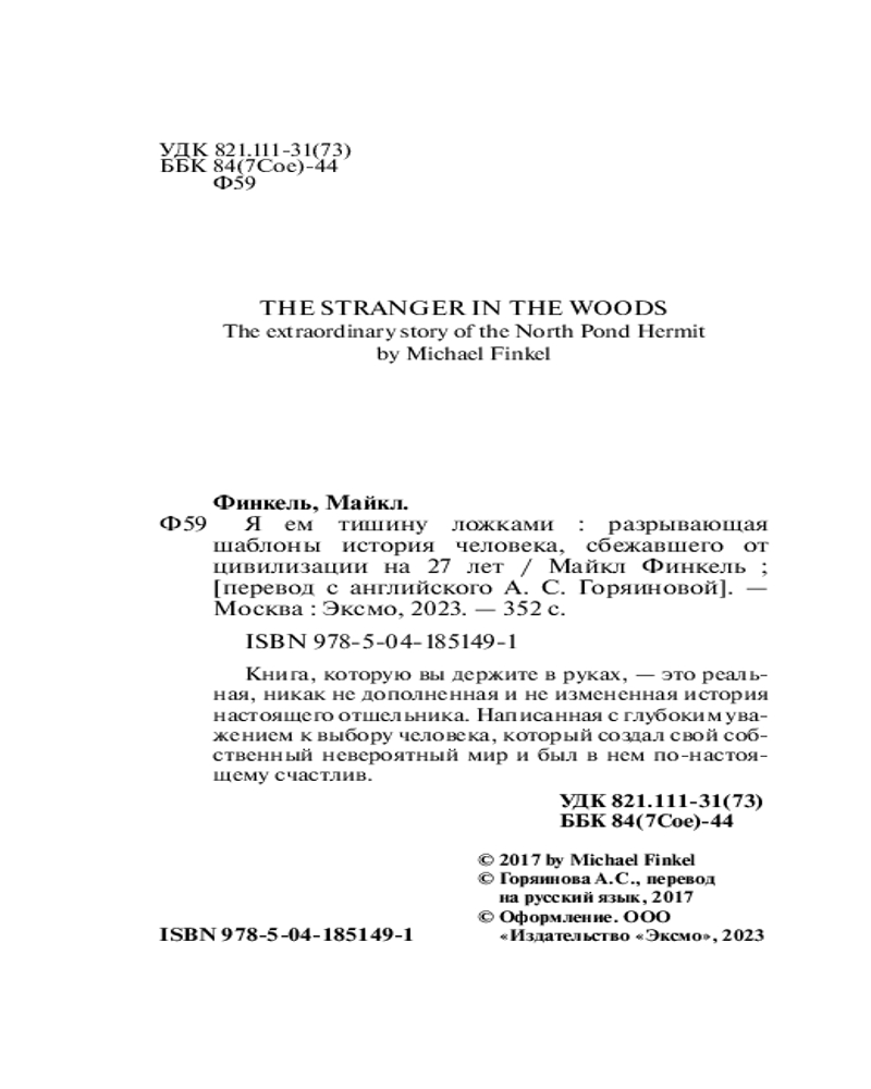 Книга, которую вы держите в руках, это невыдуманная история настоящего отшельника, написанная с глубоким уважением к выбору человека, который создал свой собственный невероятный мир и был в нем по-настоящему счастлив.