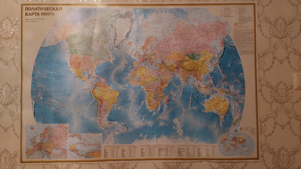 Карта мира. Политическая и физическая -давно искала такую карту,помогает детям-школьникам и взрослым,ведь столько много изменений в мире образования новых государств,карта это нужная вещь в семье