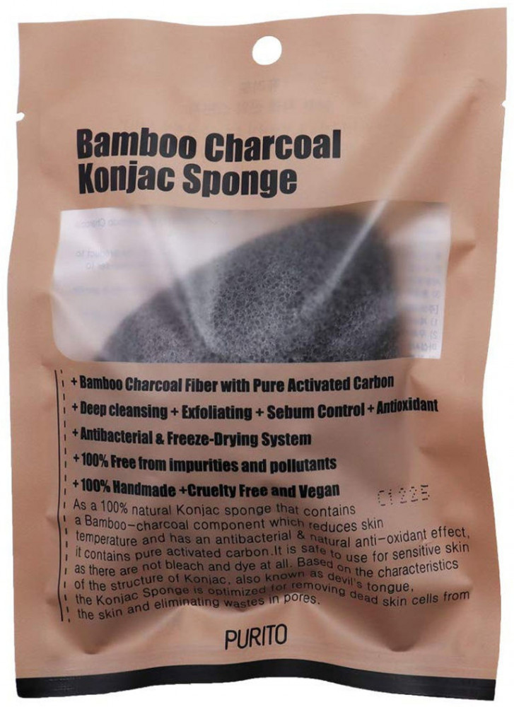 PURITO Спонж косметический с древесным углем «Bamboo Charcoal Konjac Sponge»+161