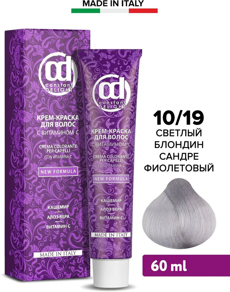 Крем-краска для волос с витамином С, оттенок 10/19 Светлый блондин сандре фиолетовый | Constant Delight