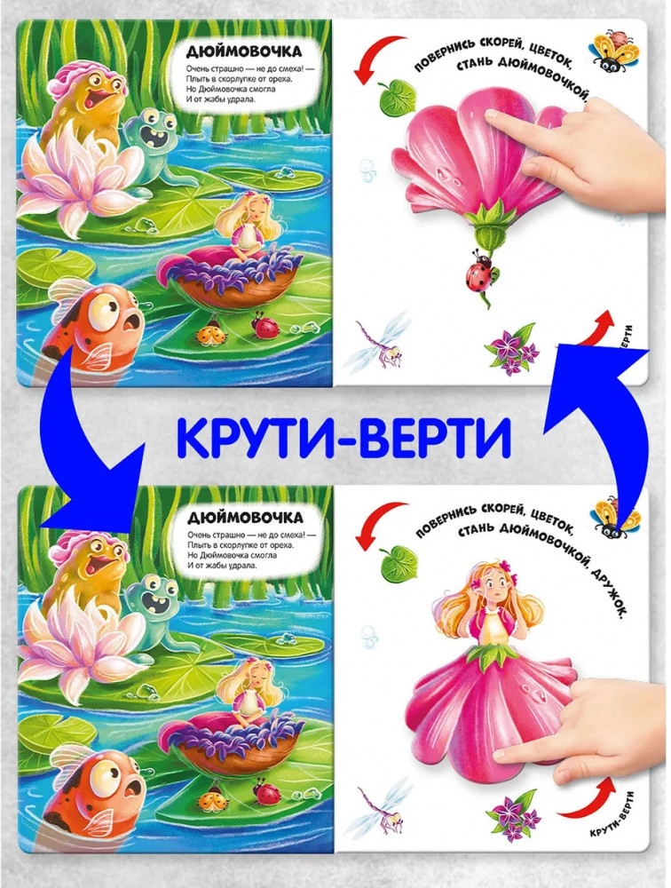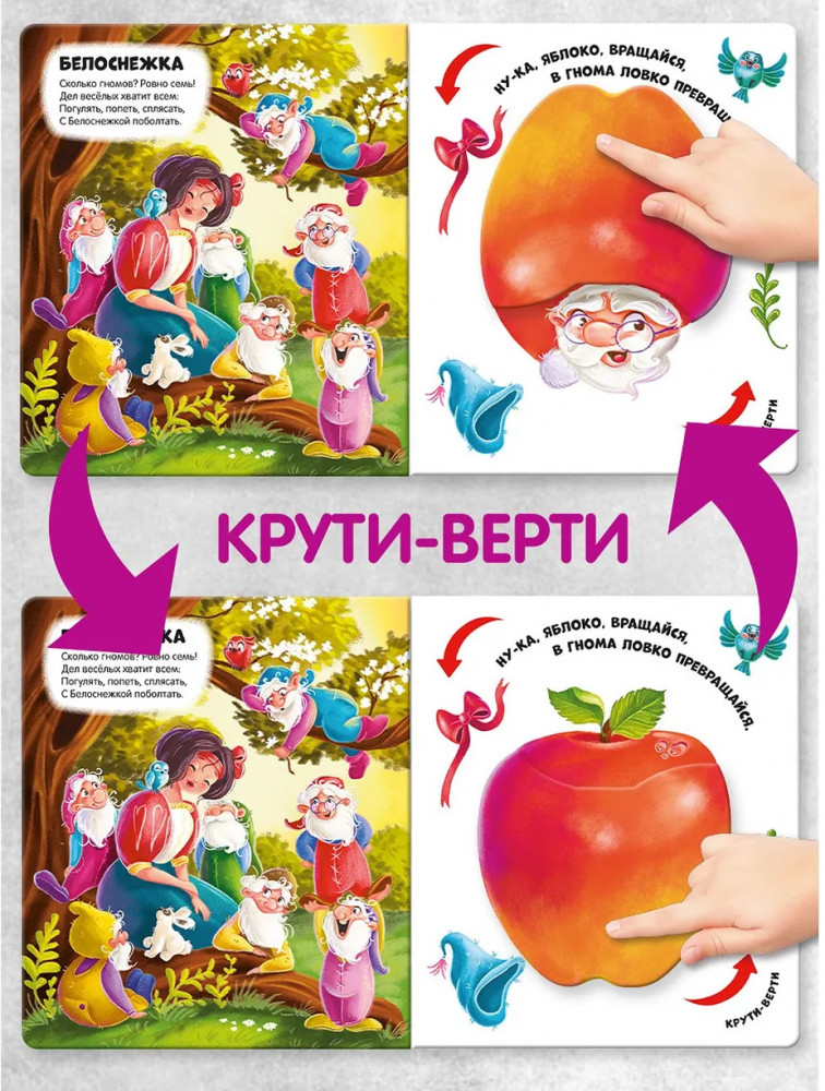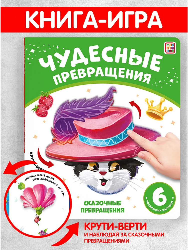 💳 Оплатить за товар можно при получении 🇰🇿 Есть бесплатная доставка по Казахстану от 1 дня 🎁 Копите бонусы с каждой покупки Серия: Чудесные превращения Серия «Чудесные превращения» от торговой марки Malamalama — это книги, полные волшебства. На каждом развороте — добрый стишок и вращающийся элемент, благодаря которому одна забавная и милая фигурка становится совершенно другой. Малыш сможет повернуть его пальчиком, не прилагая никаких усилий, и увидеть настоящее чудесное превращение. |