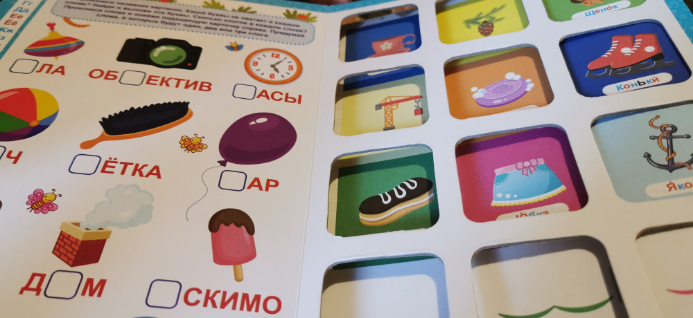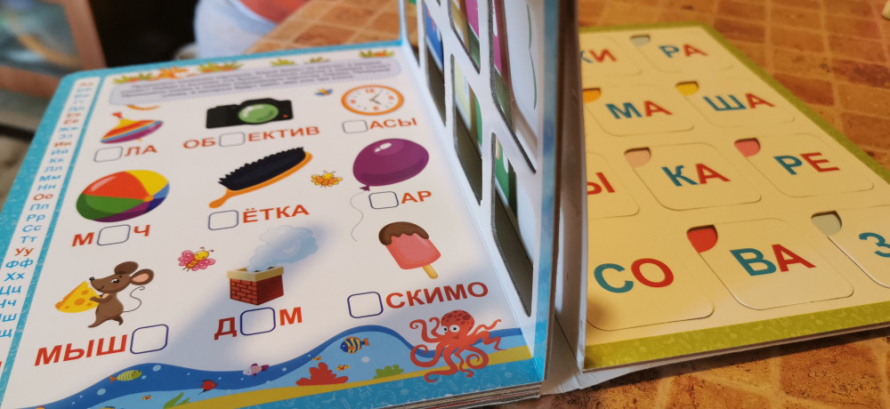 Сама книжка замечательная. Интерактивные элементы нравятся ребёнку. Заниматься интересно, можно придумывать дополнительные задания. Но мой экземпляр был плохо проклеен или клей рассохся. Пришлось самостоятельно пролеживать между окошками. Вроде бы не страшно, но осадочек, как говорится, остался. Команда flip, как всегда, на высоте.