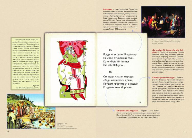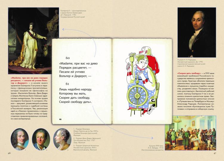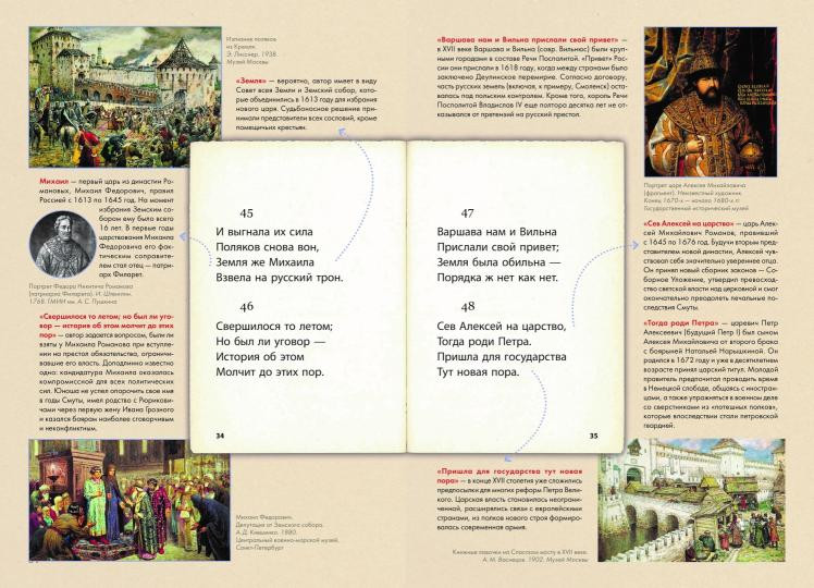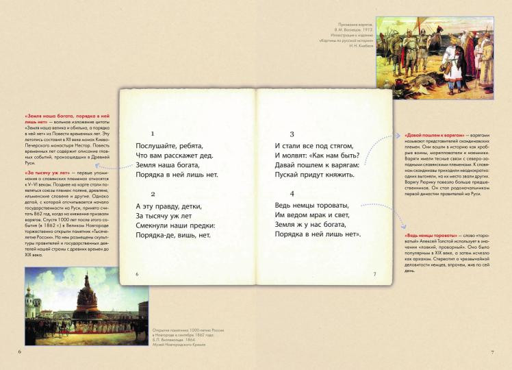 «Веселая царица была Елисавет: поет и веселится, порядка только нет». В издании приводится текст знаменитой поэмы А. К. Толстого в 83 стихах, повествующей об истории государства Российского от Гостомысла до Тимашева, и подробный иллюстрированный комментарий к стихам, позволяющий внимательно, как будто заглядывая в словари и энциклопедии, прочитать одно из любимых произведений выдающегося писателя. Книга подготовлена с использованием технологии «книга в книге», органично соединяющей справочный материал (более 500 статей и более 100 изображений) и текст поэмы. В оформлении использованы иллюстрации Екатерины Климовой. Комментарии и подбор изображений Оксаны Бариновой. Издание будет полезно всем детям и взрослым, внимательно читающим русскую классическую литературу. |