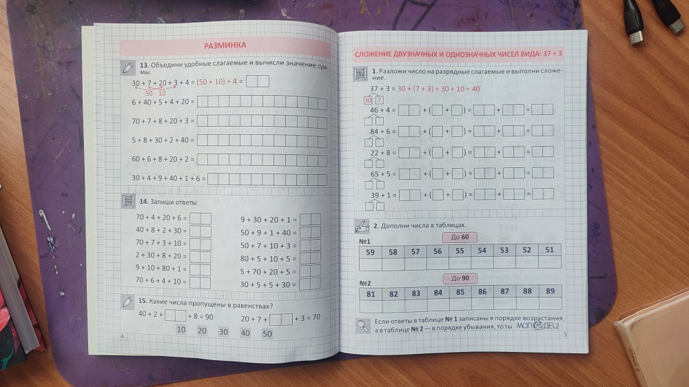 Тренажёр по устному счёту в пределах 100 с переходом. Сложение. 2 класс-20% +14