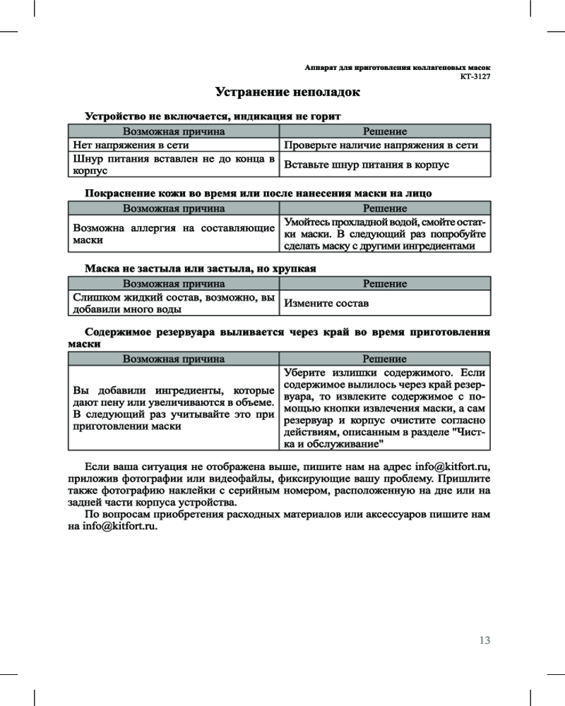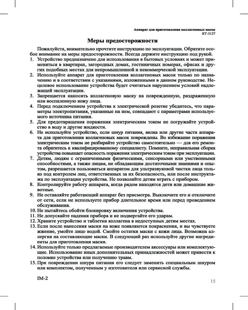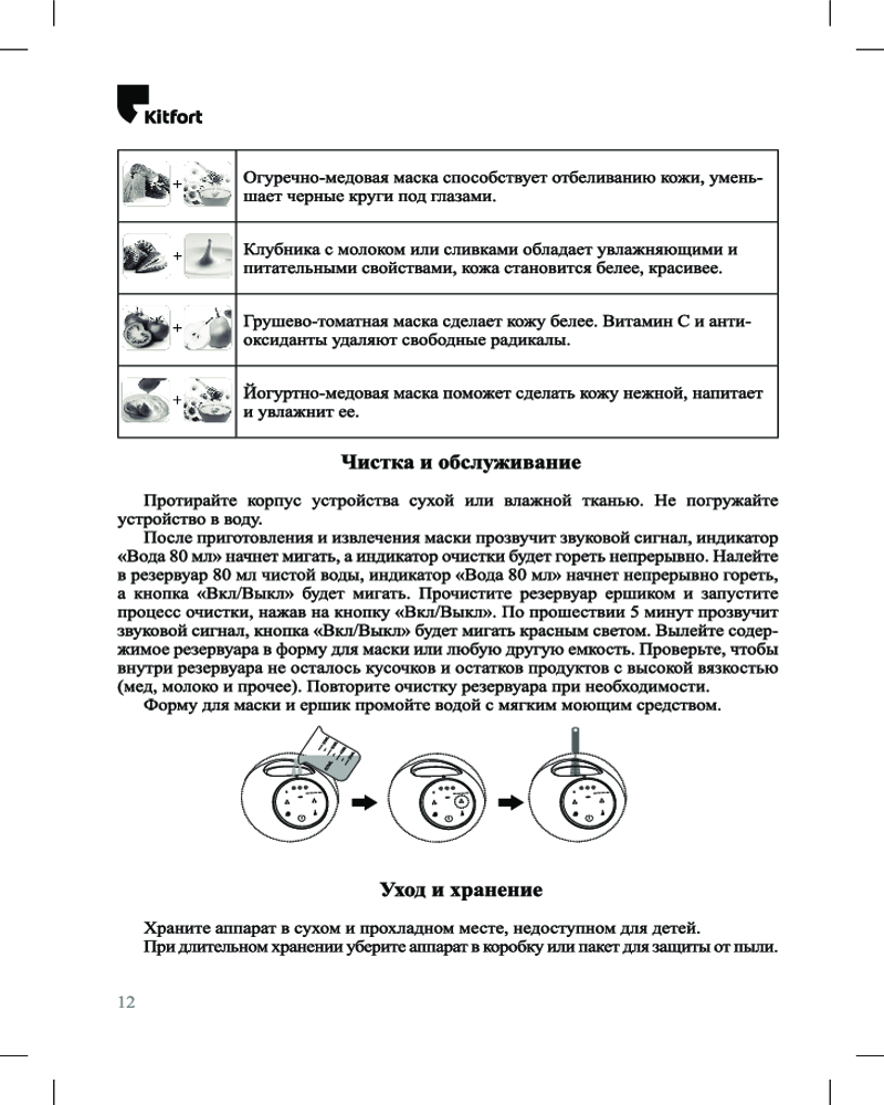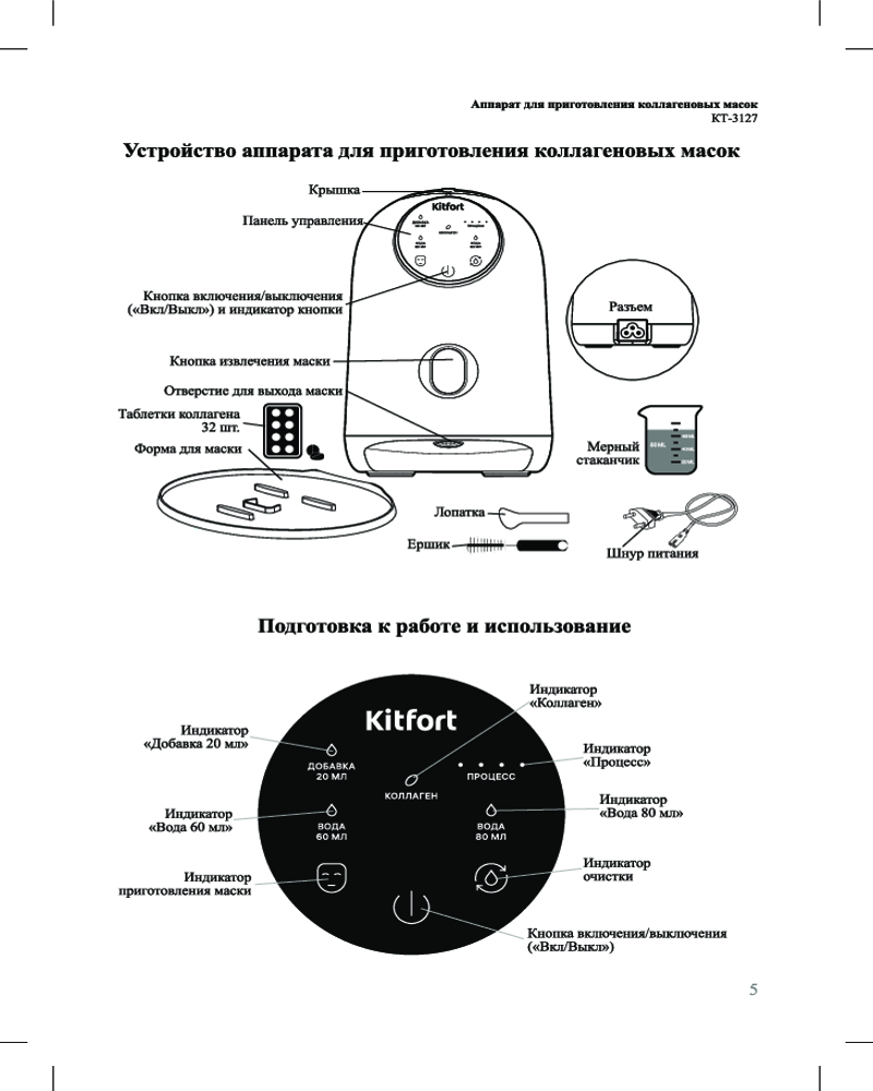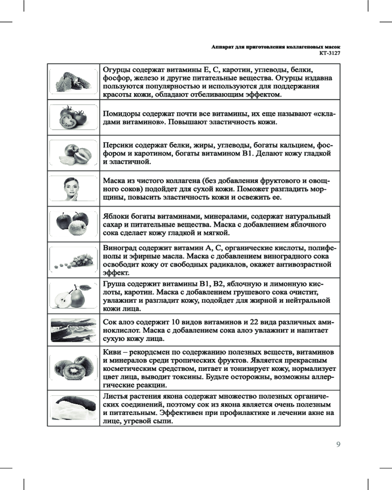 В комплекте к прибору идут 32 таблетки коллагена, которые впоследствии можно докупить. Также прибор КТ-3127 дополнен ершиком для очистки, мерным стаканом, специальной лопаткой и формой для маски. Ухаживать за прибором проще простого!
