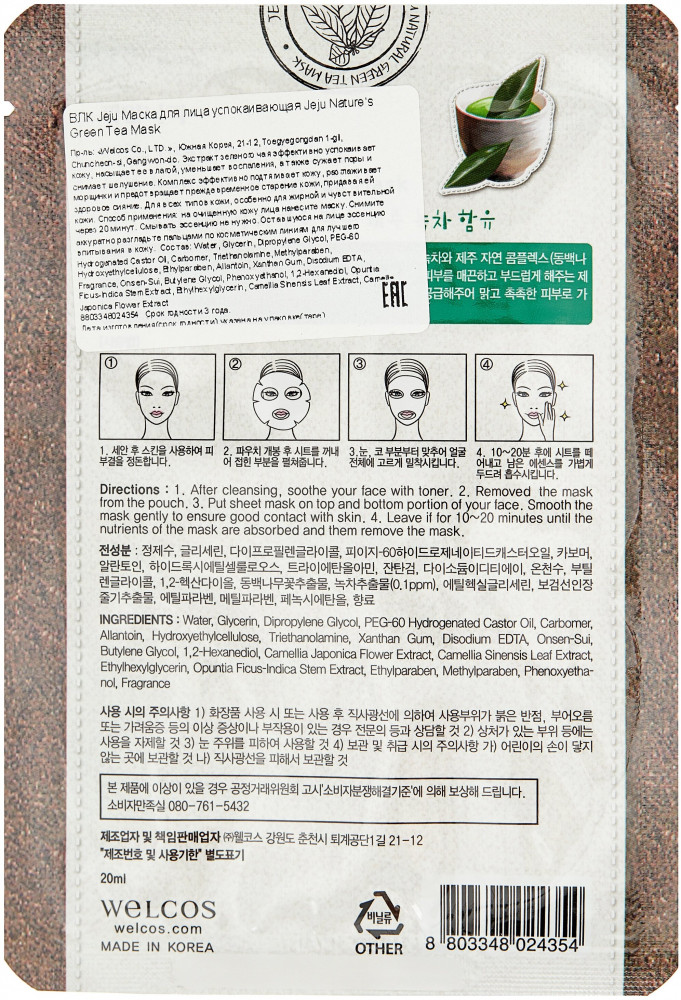 Welcos Маска на тканевой основе для лица «Jeju Nature's» с экстрактом зеленого чая