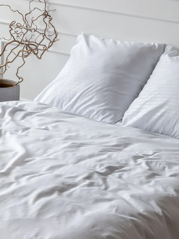весь мелкий мусор цепляет, волосы, пух, все цепляет, не понравился, не советую. Я аж 2 комплекта заказала жалею. еще и ткань сама скатывается.