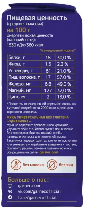 Garnec Мука универсальная без глютена «Здравичка»-20% +39