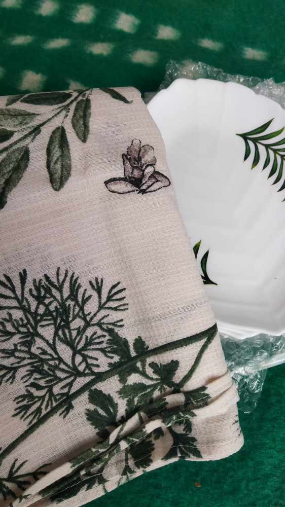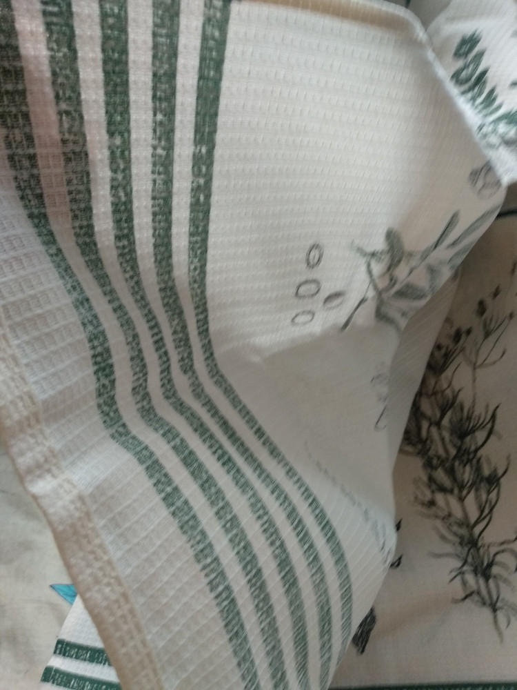Соблазнил растительный принт, очень красивый, при стирке не полинял, не изменилась яркость и, что немаловажно, ткань не дала усадку! Хорошие полотенца за такую невысокую цену!