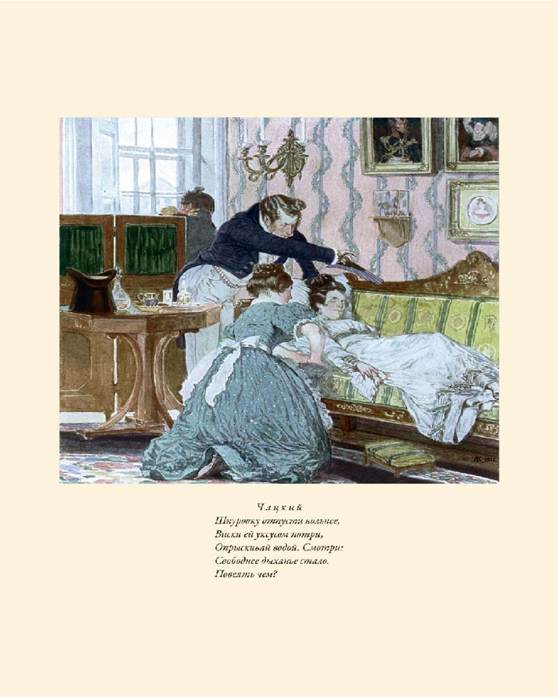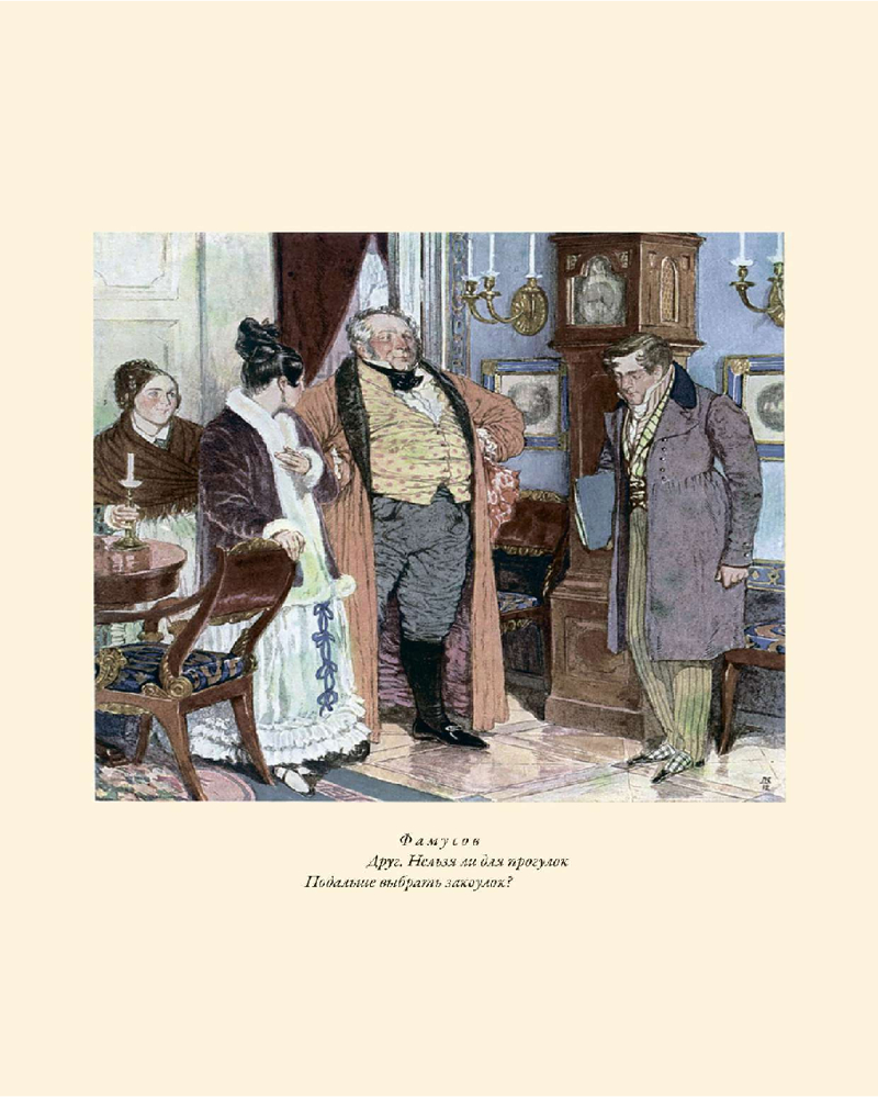 В данную книгу вошли рисунки сразу двух талантливых художников. Работы Михаила Сергеевича Башилова (1821-1870) украшали самое первое полное издание «Горя от ума» 1862 года, а иллюстрации Дмитрия Николаевича Кардовского (1866-1943), созданные с 1907 по 1912 годы, с момента первой публикации стали классикой оформления бессмертной грибоедовской комедии.