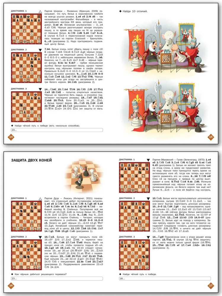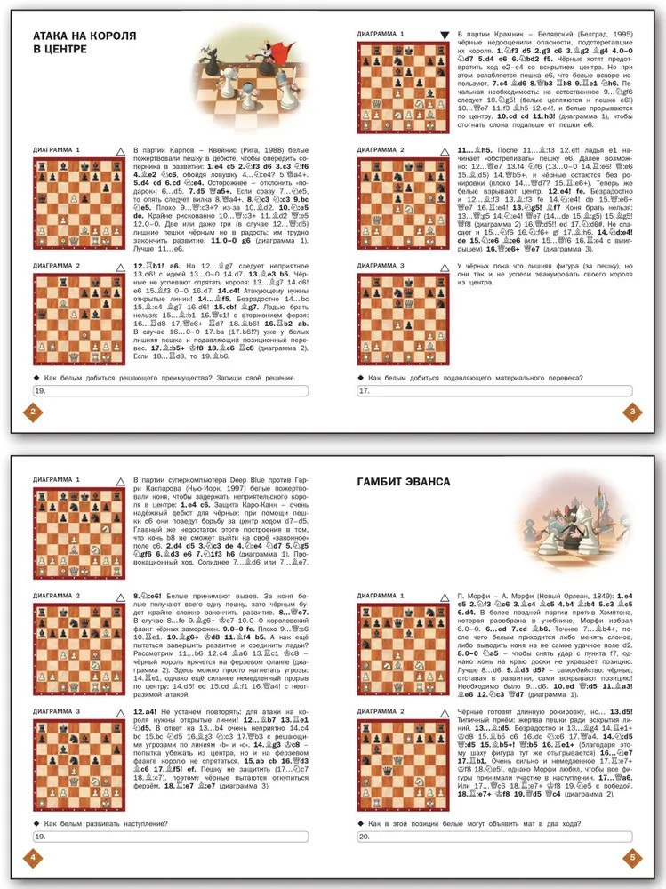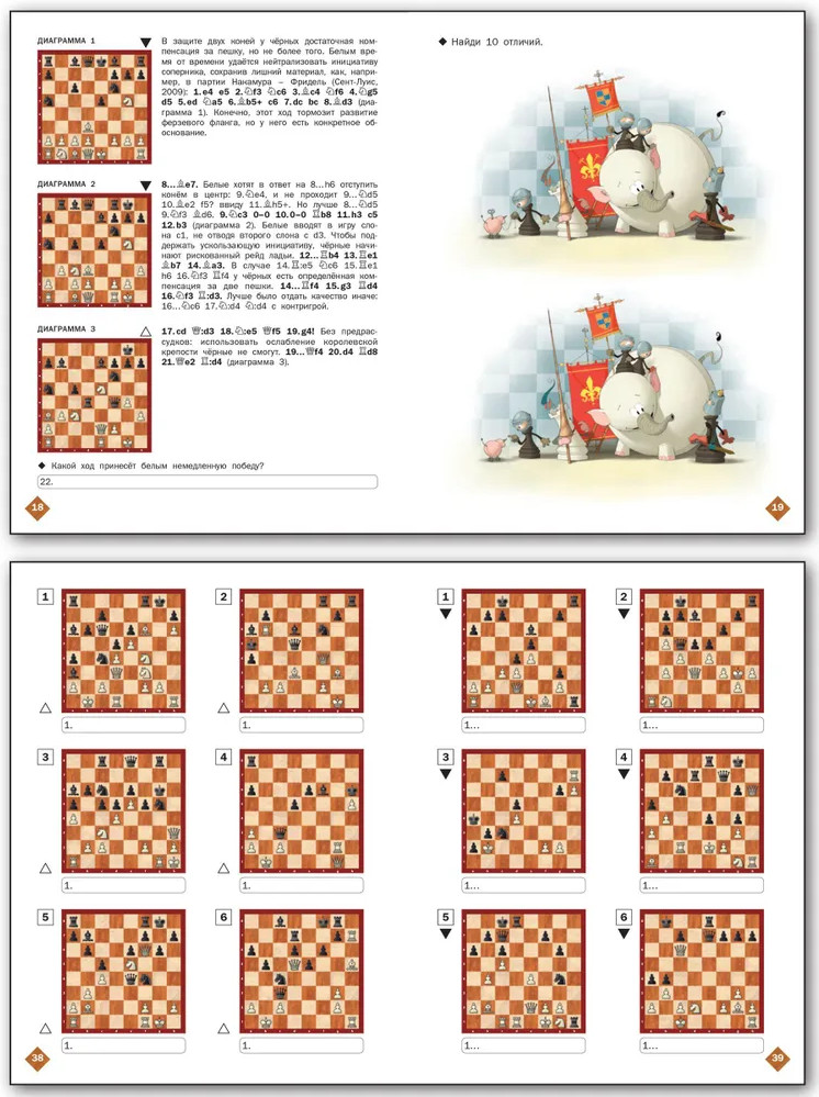 💳 Оплатить за товар можно при получении 🇰🇿 Есть бесплатная доставка по Казахстану от 1 дня 🎁 Копите бонусы с каждой покупки Серия: Шахматная школа Тетрадь предназначена для закрепления знаний, полученных при работе с учебником «Шахматная школа. Третий год обучения», рекомендованным Федерацией шахмат России. Эффектные партии и комбинации помогут раскрыть перед учениками всю красоту и глубину шахмат, а головоломки и шарады позволят проводить занятия в игровой, увлекательной форме. Темы уроков: «Атака на короля в центре», «Гамбит Эванса», «Слабые поля вблизи короля», «Кто сильнее: слон или конь?», «Королевский гамбит», «Защита двух коней», «Сицилианская защита, вариант дракона», «Французская защита», «Ферзевый гамбит», «Староиндийская защита». Тетрадь содержит 26 заданий «Найди сильнейшее продолжение» и 90 позиций на мат в три хода. |