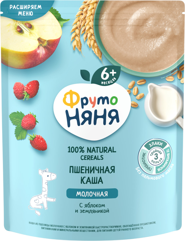 ФрутоНяня Каша молочная «Пшеничная с яблоком и земляникой»-26% +35