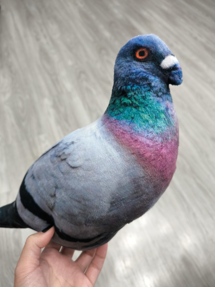 Такой реалистичный голубь. Окрашен в живые реальные цвета, оперение, глаза, очень красиво. Набивка мягкая, можно было бы набить плотнее.