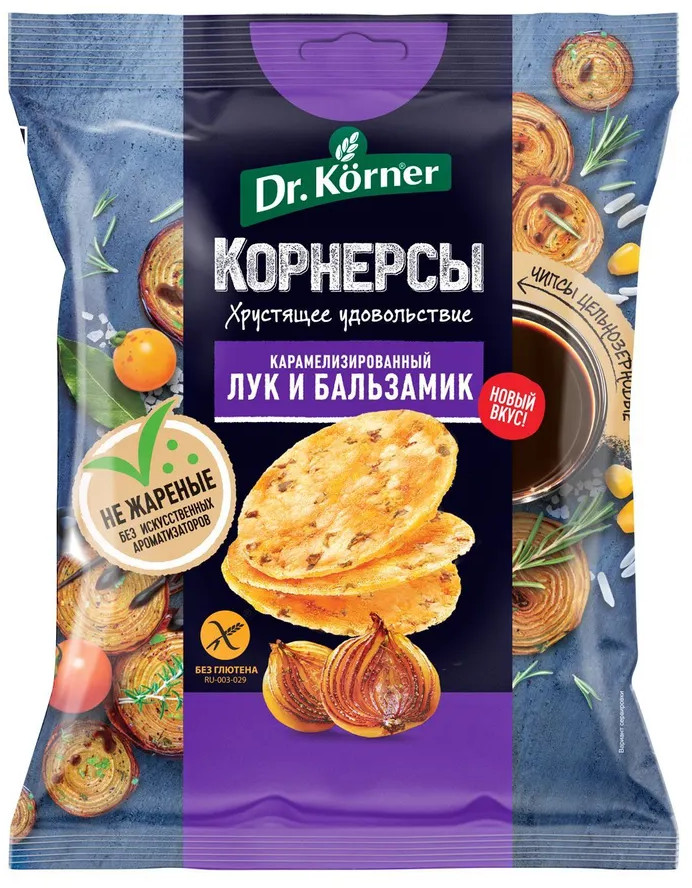 Dr. Körner Чипсы цельнозерновые кукурузно-рисовые с карамелизированным луком и бальзамическим уксусом