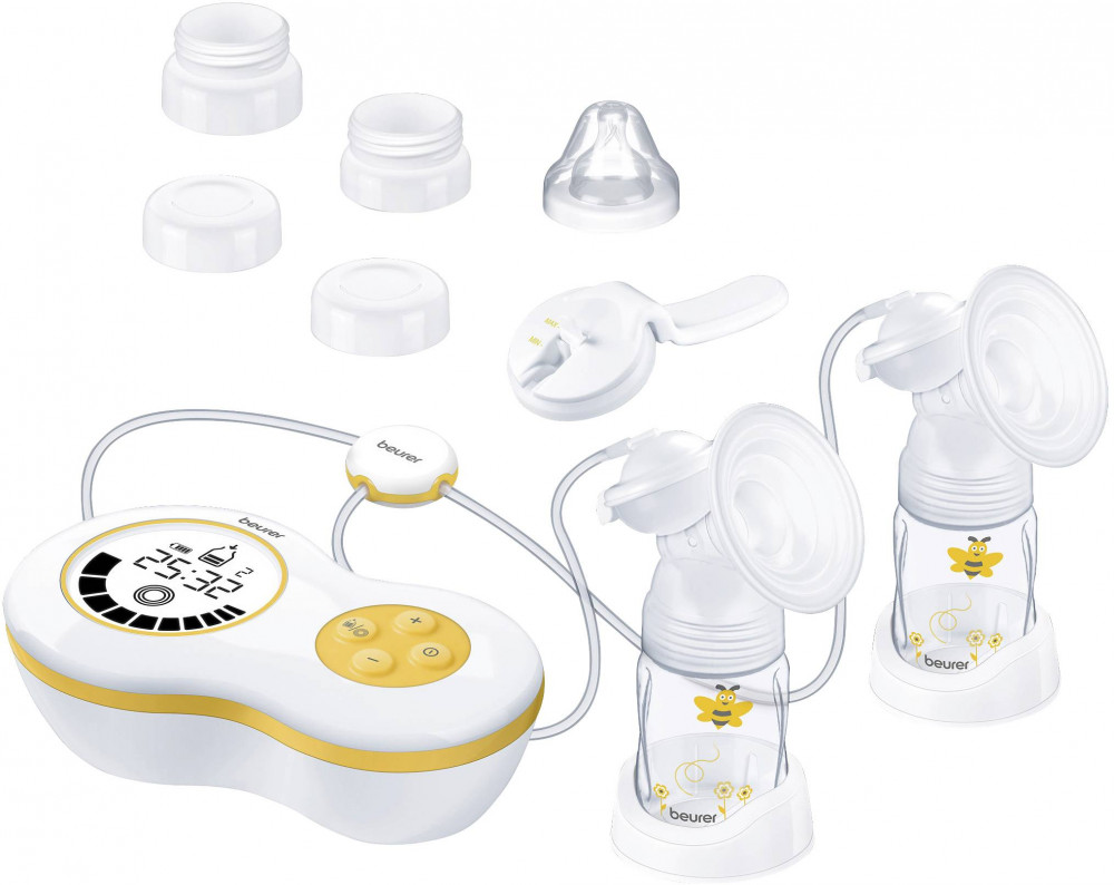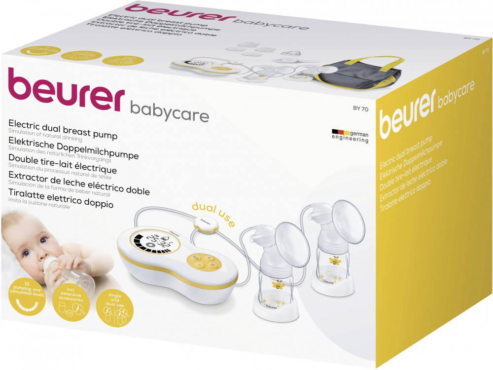 Электрический двойной молокоотсос Beurer BY 70 Dual представляет собой удобное устройство для сцеживания молока из груди. Он оснащен двумя секциями, позволяющими использовать молокоотсос одновременно в обеих грудях или только в одной. Объем одной бутылочки 180 мл.
