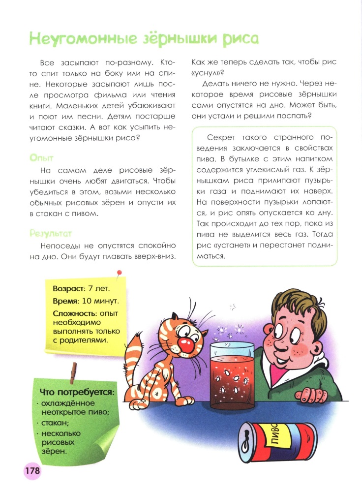 Книга отличная: яркая, написано простым доступным языком, что и ребенку понятно! Племяшка в восторге и папа тоже, так как все опыты делают вместе. Что очень важно, в опытах участвуют простые вещи, которые есть у каждого дома! Отличный подарок!