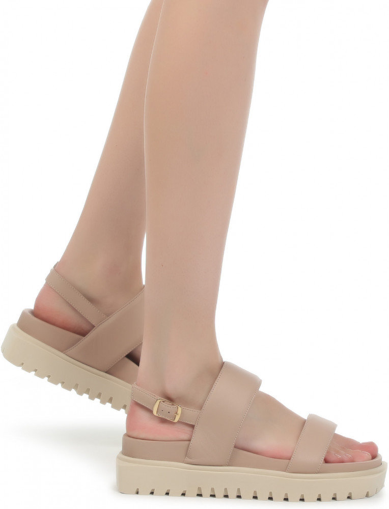 Верх модели выполнен из натуральной гладкой кожи теленка. Ремешок на застежке сделает посадку максимально комфортной, его длину можно регулировать. Подкладка и стелька из натуральной кожи теленка безопасны для стопы и не препятствуют появлению мозолей. Материал позволит ногам дышать и меньше потеть. Анатомическая форма стельки с бортиками и углублениями под пальцы лучше фиксирует стопу и делает обувь комфортнее. Резиновая подошва износостойкая и непромокаемая, она устойчива к повреждениям, быстро очищается от загрязнений. Толщина подошвы — 3 см. Способ соединения подошвы — клеевой.