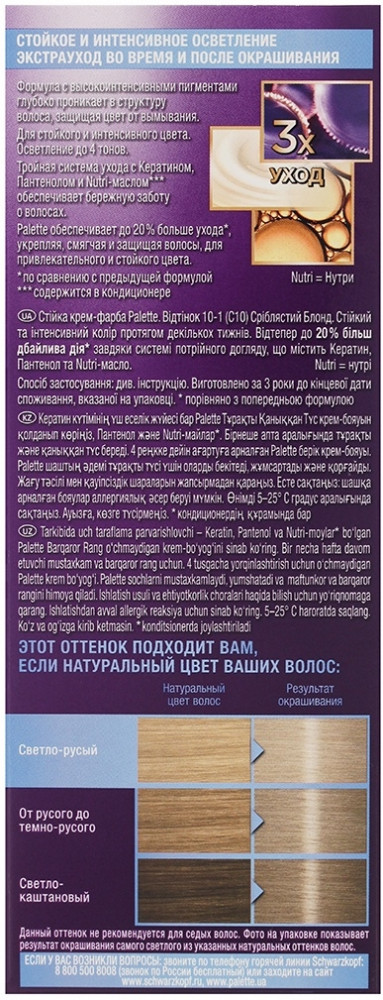 Palette Крем-краска для волос, оттенок C10 (10-1) Серебристый блондин