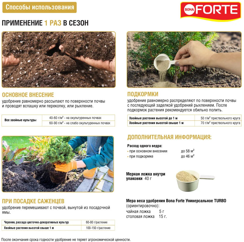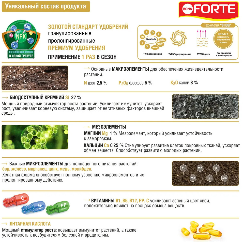 Bona Forte Удобрение гранулированное «Хвойное»+107 расход минимальный объём банки качество