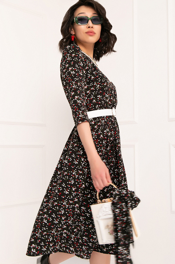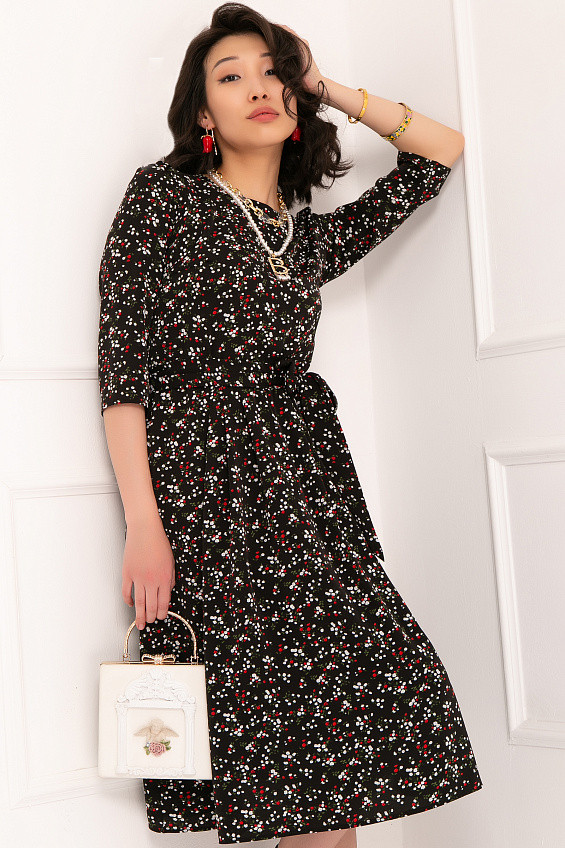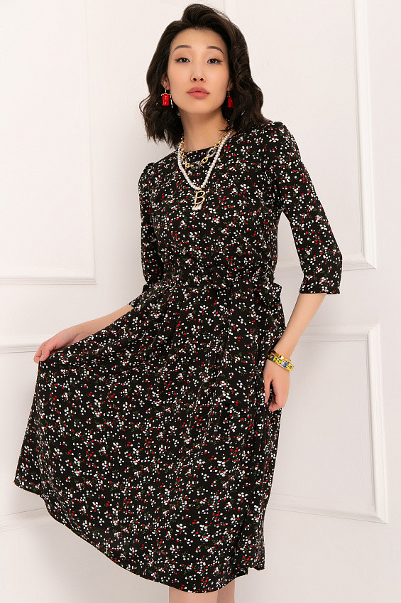 Платье очень женственное. Пошив идеальный. Сшито по великолепным лекалам. Выточки на груди на месте, талия, плечевой пояс , все хорошо, просто придраться не к чему. Размерной сетке соответствует. Покупала дочери у нее 46 размер, рост 164, но не маленькая грудь, третий размер, платье сидит прекрасно. Ткань скользкая (предупреждаю тех, кому такие не комфортны) практически не мнется. Не слишком лёгкое, довольно плотный материал, не просвечивает. Летом в нем будет жарко. Ткань красиво струится, складки на талии аккуратные, равномерные. К платью прилагается плотный, двойной пояс из такой же ткани, но с кожаным ремешком смотрится лучше. Очень приятная расцветка, не слишком яркая, чуть светлее, чем на фото сайта, принт не броский. Платье, что называется и в пир, и в мир. Однозначно рекомендую. Купила со скидкой и пожалела, что не взяла себе в другой расцветке. Не знала, как оно будет смотреться, подойдёт ли размер. Теперь знаю, что платья этого производителя достойные, обязательно куплю и себе. Спасибо производителю за качественный товар и флип КЗ за доставку. Собственно у Флип КЗ все, как всегда на высоте, начиная от разнообразия и упаковки товаров, до курьеров. Давно пользуюсь услугами интернет магазинов, Флип КЗ лучший по качеству обслуживания.