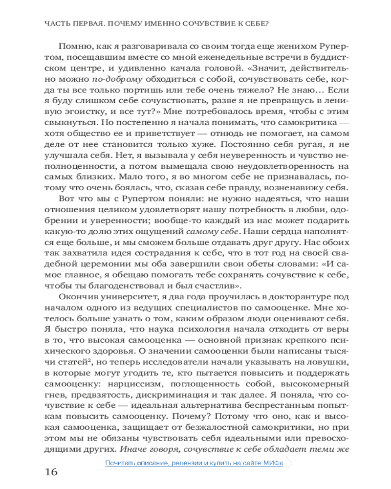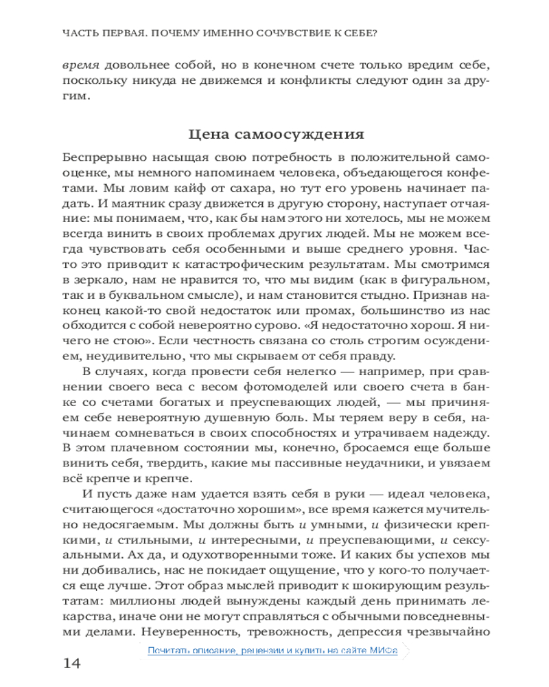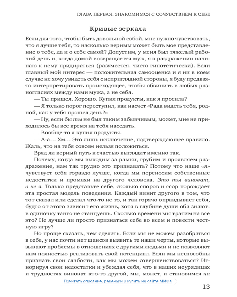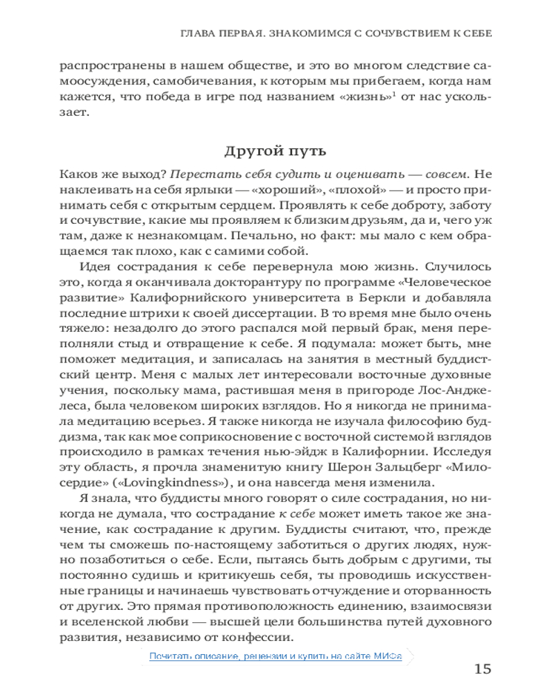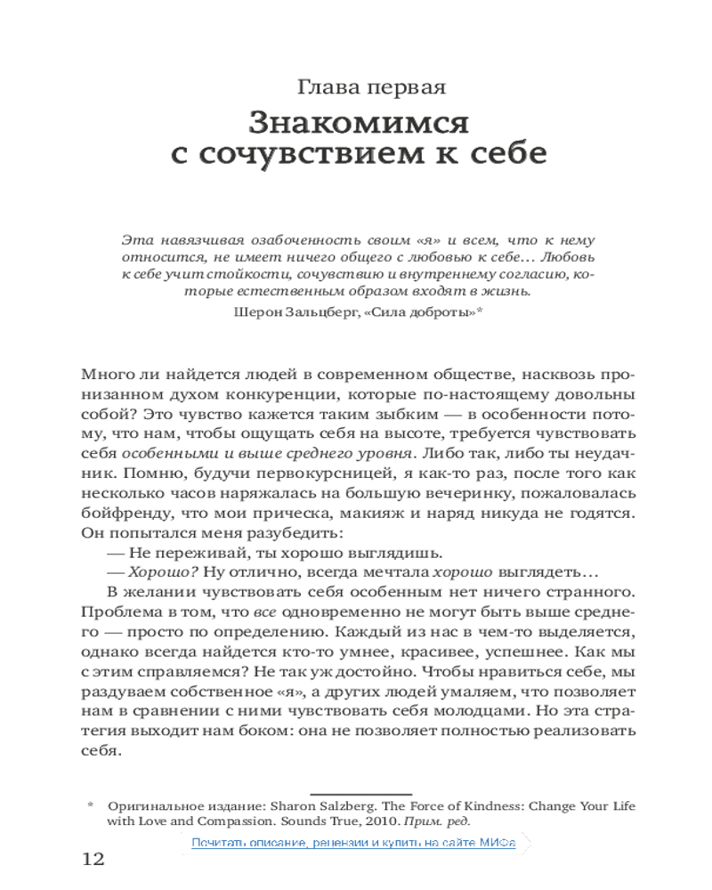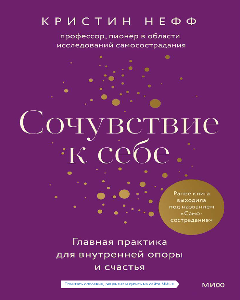 Сочувствие к себе. Главная практика для внутренней опоры и счастьяВ данный момент этот товар отсутствует в продаже. Возможно, у нас найдется аналогичный или похожий товар здесь. В нашей культуре поощряется требовательность к себе и отношение к жизни как к соревнованию. Мы стремимся быть лучше, привлекательнее, сильнее, чем окружающие, постоянно доказываем, что «достаточно хороши». Мы поступаемся своими желаниями ради социального одобрения, увязаем в самокритике или самоутверждаемся за счет других. Мы тратим уйму сил и времени на деструктивные переживания и в итоге выгораем и теряем вкус к жизни. |