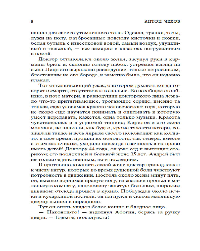 Серия: Мировая классика «Я от души советую вам почаще заглядывать в книги Чехова... чтобы, забываясь, пережить эти сказочные сны так, как они были задуманы», — говорил В. В. Набоков. Чеховский художественный мир, как мозаика, складывается из отдельных картин и ситуаций, из разнообразных проявлений человеческих характеров, порой неожиданных, порой парадоксальных. Произведениям Чехова зачастую трудно дать однозначную трактовку: привычные оценочные категории (идеологические, социальные, психологические) не то чтобы не применимы, но не абсолютны. «Над рассказами можно и плакать, и стенать, можно страдать заодно со своими героями, но, полагаю, нужно это делать так, чтобы читатель не заметил. Чем объективнее, тем сильнее выходит впечатление», — слова из письма Чехова можно было бы поставить эпиграфом к этому сборнику, в котором печатаются произведения 1887-1903 годов. В их числе такие известные, как «Дуэль», «Палата № 6», «Человек в футляре», «Крыжовник», «О любви» и др. |