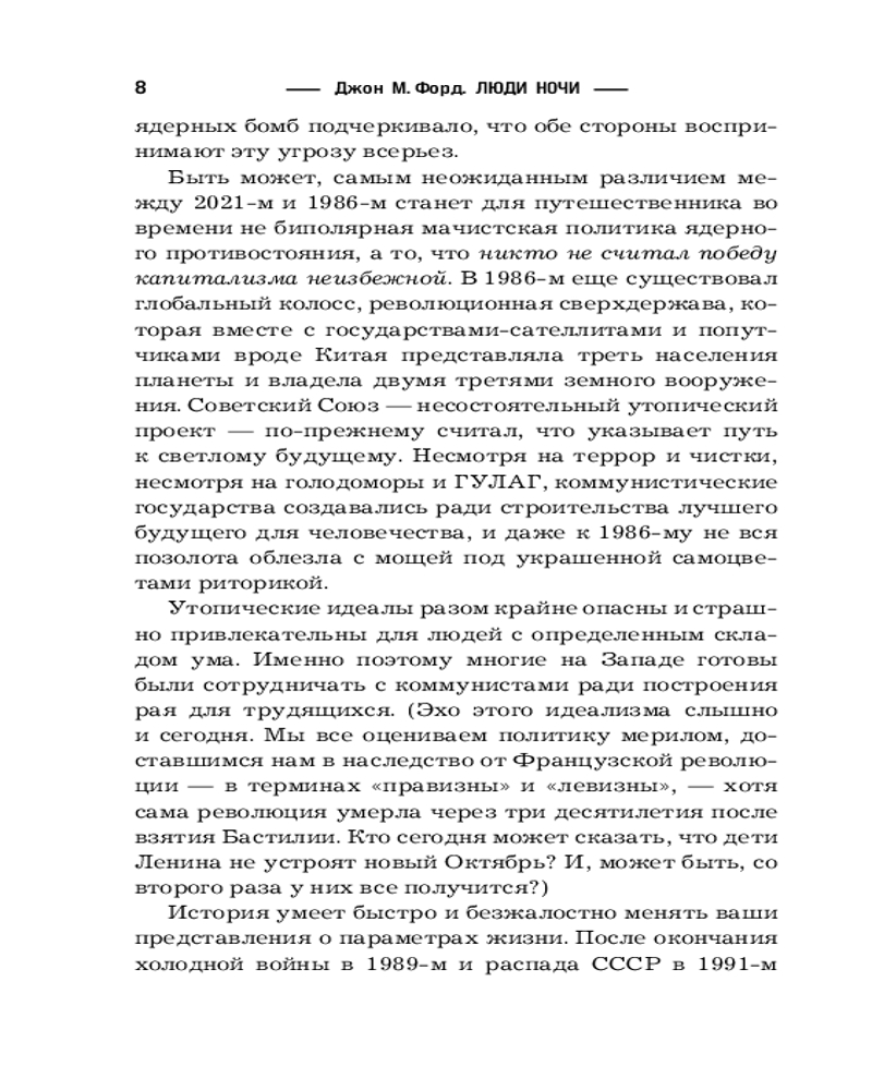💳 Оплатить за товар можно при получении 🇰🇿 Есть бесплатная доставка по Казахстану 🎁 Копите бонусы с каждой покупки Серия: Fanzon. Зона Икс «Люди ночи» Джона М. Форда — экстраординарный роман об игре разведок и человеческом предательстве, сплетающий прошлое и настоящее в атмосфере саспенса. Николас Хансард — талантливый историк из небольшого колледжа в Новой Англии. Это внешняя часть его карьеры, а скрытая состоит в работе на Белую группу — «научно-исследовательское и консультативное агентство» с теневыми связями в правительстве. В сотрудничестве с ними Хансард разоблачает тайны старых и новых документов — и проявляет себя как гениальный дешифровщик. |