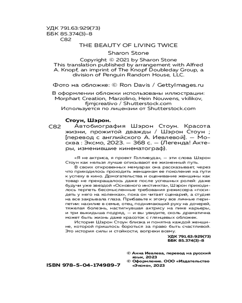 | Автобиография Шэрон Стоун. Красота жизни, прожитой дважды+155 (бонусов)