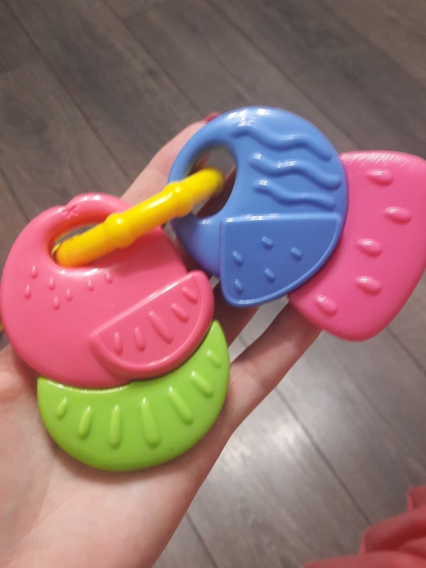 Игрушка хорошая, пока доча еще совсем маленькая, прорезыватель в рот не помещается, но, думаю, она нам очень поможет в будущем.
