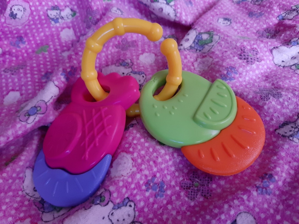 Отличная игрушка. Цена низкая, а качество на 200%. И гремит и прорезыватель на каждой есть и колечко, которое так нравится нам одевать на руку))). Очень довольна покупкой. И доче нравится
