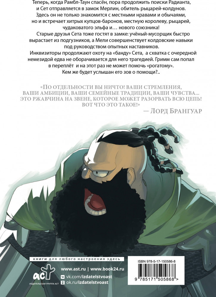 В данный момент этот товар отсутствует в продаже. Возможно, у нас найдется аналогичный или похожий товар здесь. Серия: Манга. Радиант Теперь, когда Рамбл-Таун спасён, пора продолжить поиски Радианта, и Сет отправляется в замок Мерлин, обитель рыцарей-колдунов. Здесь он не только знакомится с местными нравами и обычаями, но и встречает хитрых купцов-баронов, местную королеву, рыцарей, чудаковатого эльфа и... нового союзника!