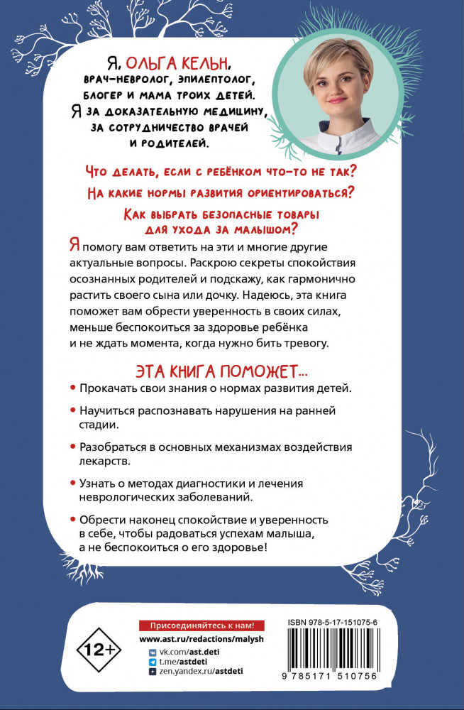 💳 Оплатить за товар можно при получении 🇰🇿 Есть бесплатная доставка по Казахстану от 1 дня 🎁 Копите бонусы с каждой покупки Серия: Про вашего ребенка: вопрос-ответ Что делать, если с ребёнком что-то не так? На какие нормы развития ориентироваться? Как выбрать безопасные товары для ухода за малышом? На эти и многие другие актуальные вопросы поможет ответить опытный специалист в области детской неврологии и мама троих детей Ольга Кельн. В этой книге она раскроет секреты спокойствия осознанных родителей и подскажет, как гармонично растить своего сына или дочку. Экспертные советы и подсказки помогут вам обрести уверенность в своих силах, меньше беспокоиться за здоровье ребёнка и не ждать момента, когда нужно бить тревогу. |