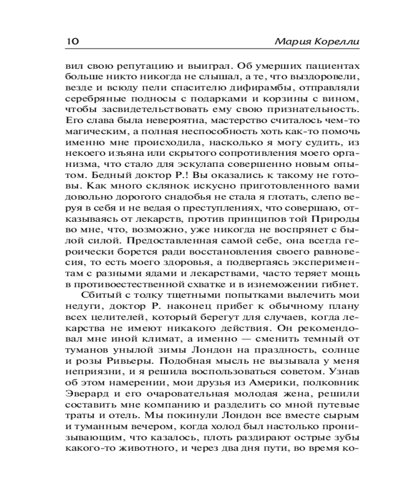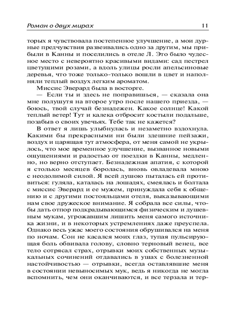 Роман о двух мирахВ данный момент этот товар отсутствует в продаже. Возможно, у нас найдется аналогичный или похожий товар здесь. Серия: Зарубежная классика Молодая и талантливая пианистка, страдающая от тяжелой депрессии, по совету врача решает сменить обстановку и отправиться с друзьями в Канны. Там она заводит знакомство с итальянским художником Рафаэлло Челлини. Он видит, что девушке не становится лучше, и предлагает обратиться к своему другу в Париже, практикующему крайне экстравагантный метод лечения при помощи электричества. |
