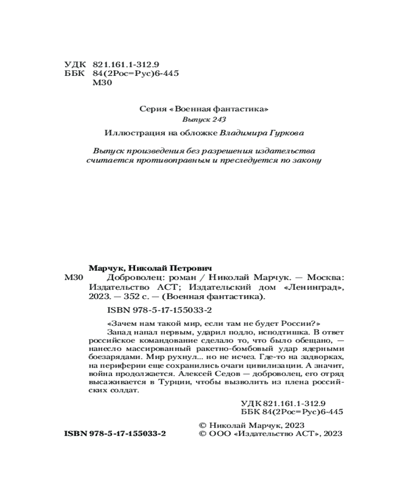 💳 Оплатить за товар можно при получении 🇰🇿 Есть бесплатная доставка по Казахстану от 1 дня 🎁 Копите бонусы с каждой покупки Серия: Военная фантастика «Зачем нам такой мир, если там не будет России?» |