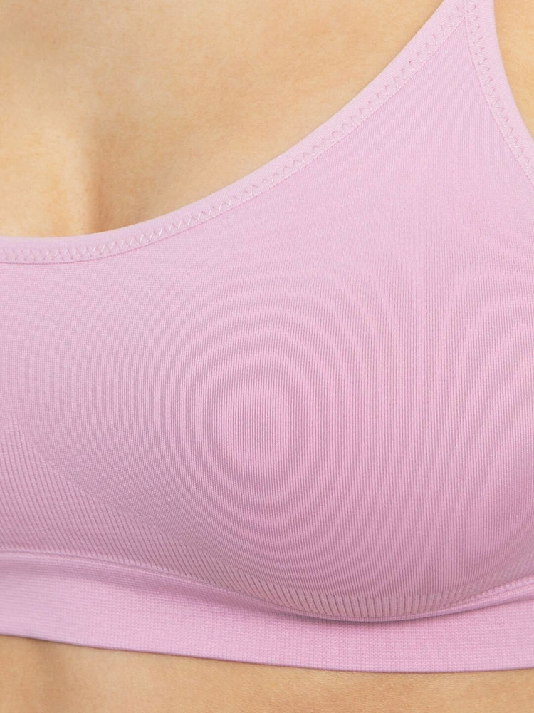 Бесшовный комплект нижнего белья выполнен из мягкого трикотажа. Топ с регулируемыми бретелями отлично держит грудь и совсем не ощущается на теле. Трусики стринги средней посадки идеально подходят для повседневной носки, не давят и не сковывают движений во время активного спорта, имеют хлопковую ластовицу. Удобный, комфортный и очень красивый комплект базового нижнего белья дополнит ваш гардероб!