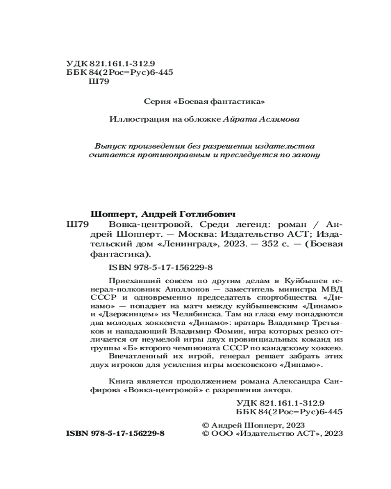 💳 Оплатить за товар можно при получении 🇰🇿 Есть бесплатная доставка по Казахстану от 1 дня 🎁 Копите бонусы с каждой покупки Серия: Боевая фантастика Приехавший совсем по другим делам в Куйбышев генерал-полковник Аполлонов — заместитель министра МВД СССР и одновременно председатель спортобщества «Динамо» — попадает на матч между куйбышевским «Динамо» и «Дзержинцем» из Челябинска. Там на глаза ему попадаются два молодых хоккеиста «Динамо»: вратарь Владимир Третьяков и нападающий Владимир Фомин, игра которых резко отличается от неумелой игры двух провинциальных команд из группы «Б» второго чемпионата СССР по канадскому хоккею. Впечатленный их игрой, генерал решает забрать этих двух игроков для усиления игры московского «Динамо». |